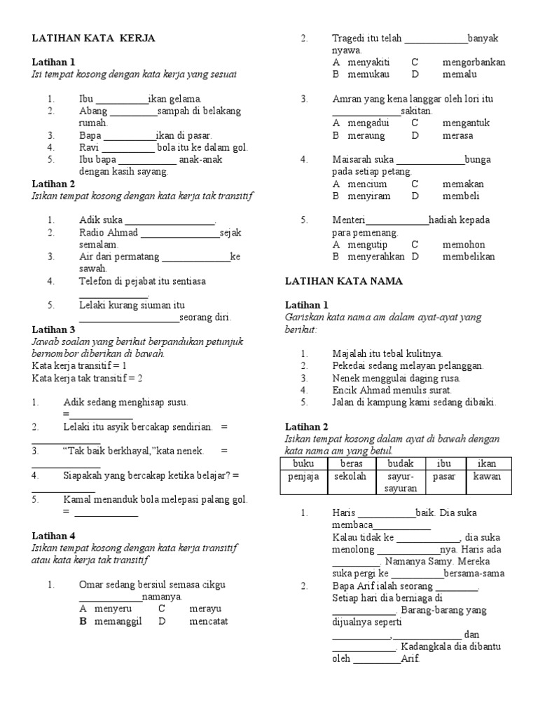Latihan Kata Kerja Kata Nama Pdf
